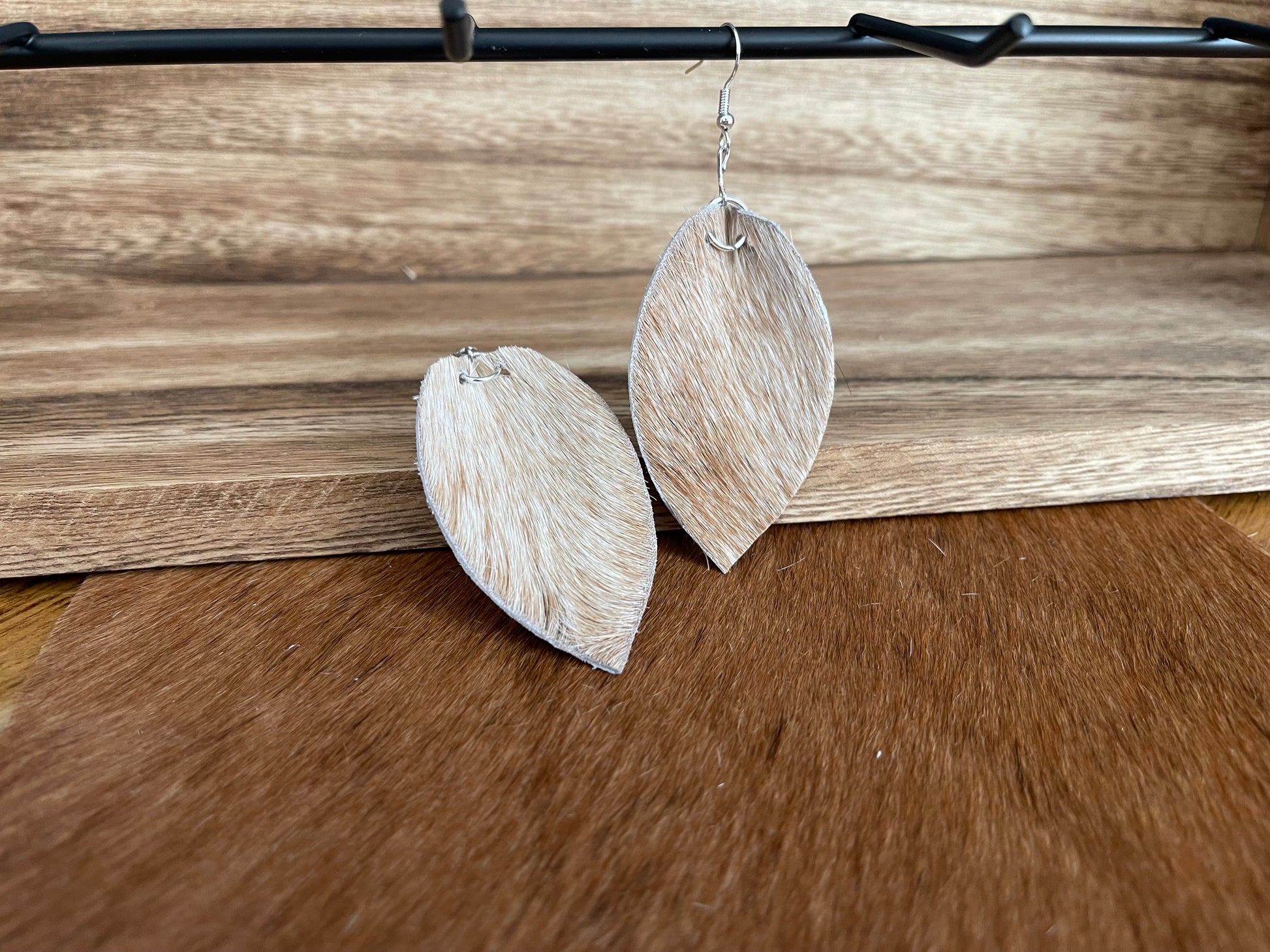 Leaf cowhide drop earrings